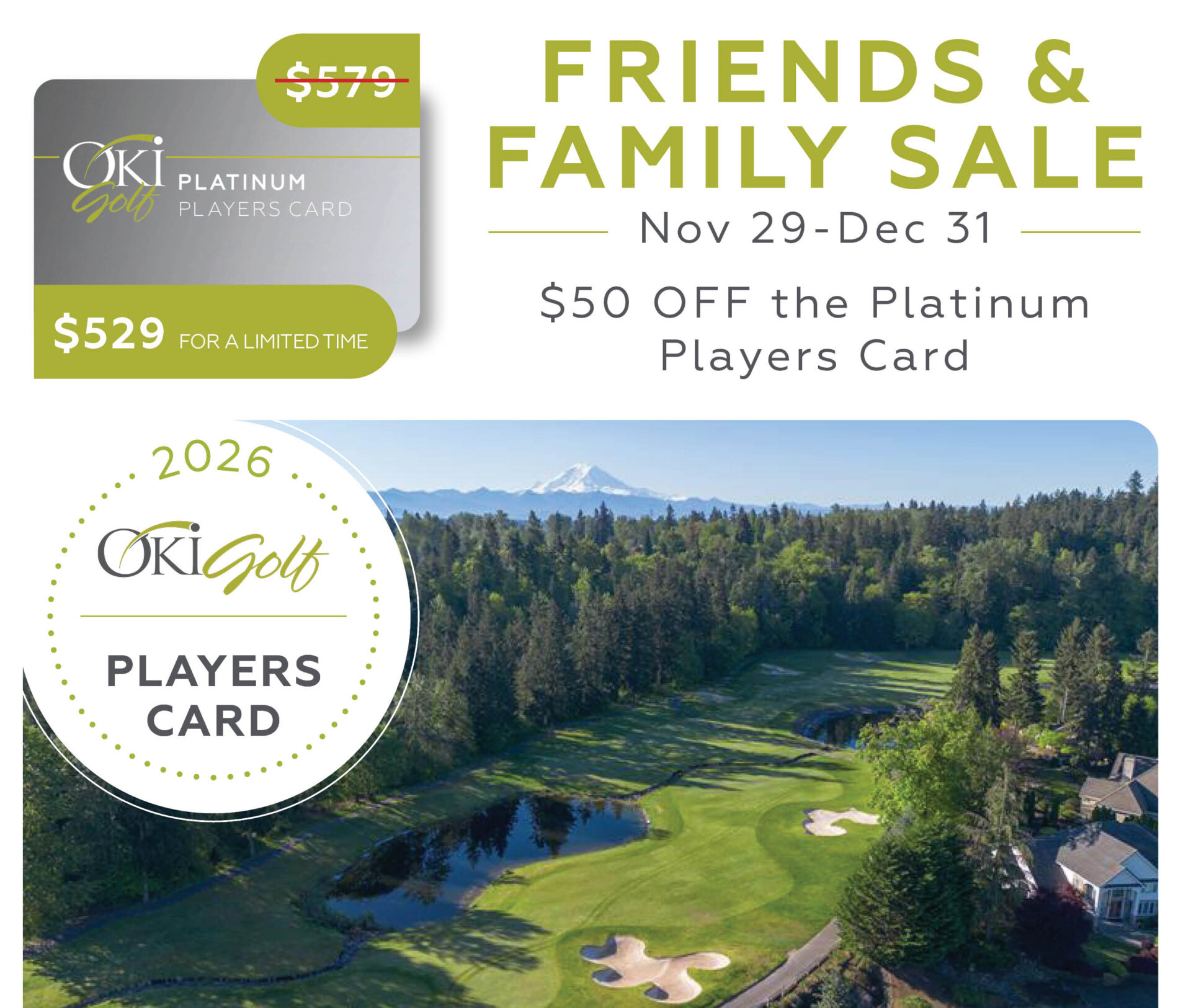 A completely stamped passport must be submitted by December 31, 2025 at an Oki Golf public course for entry into the 2026 Platinum Players Card drawing.